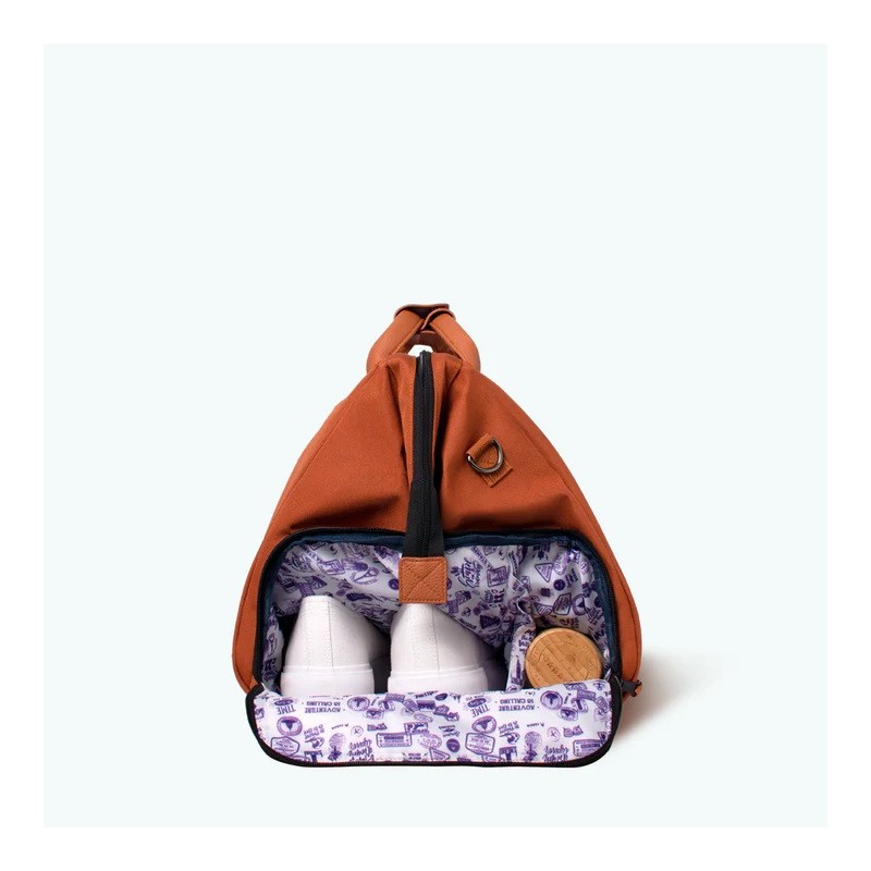Oubliez votre valise à roulettes qui ne roule plus (RIP) et passez à notre sac de voyage ingénieux, vegan et garanti à vie. Muni d'une anse à l'intérieur pour le porter à l'épaule. Pensé pour vous suivre dans toutes vos aventures, pour faire le tour du monde ou du pâté de maison.