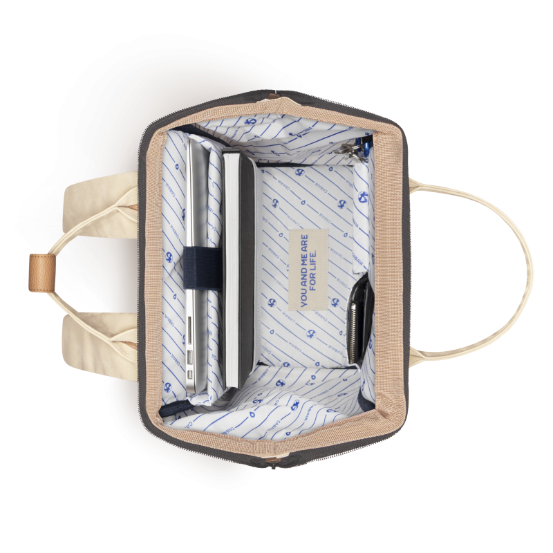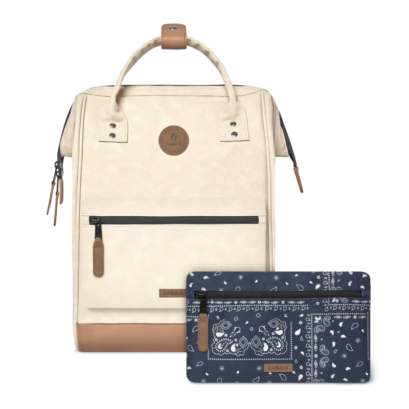 Ce sac est accompagné de 2 pochettes interchangeables : beige (Andenne) + à motifs (Malaga)