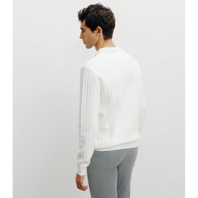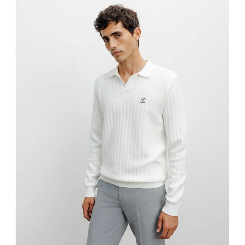 Pull col polo ouvert jeux de points écru