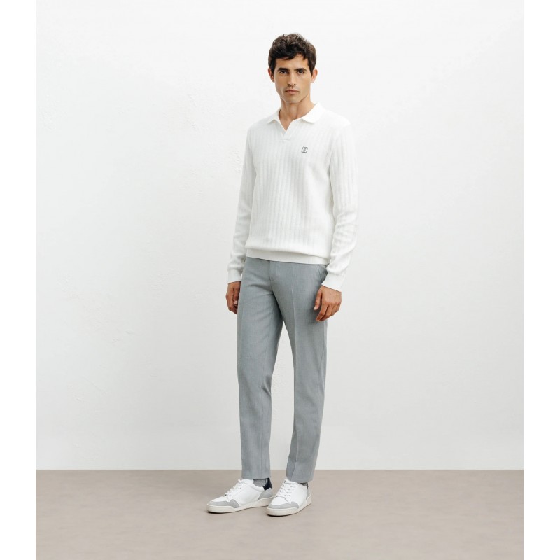 - Pull col polo ouvert manches longues.