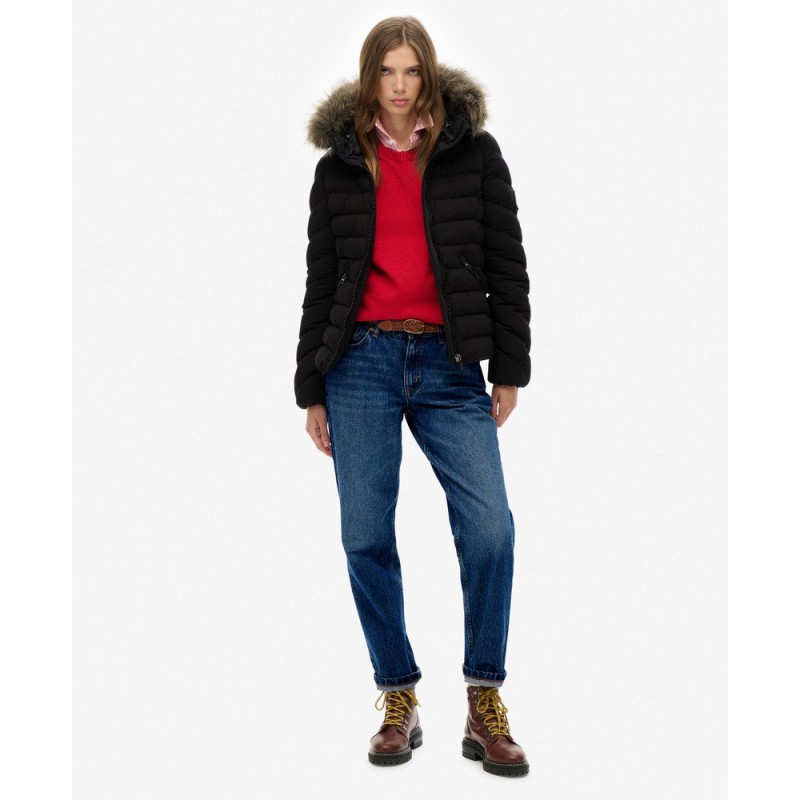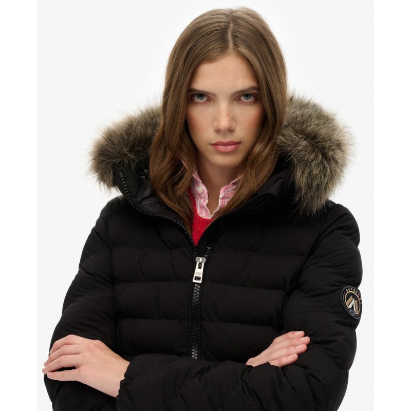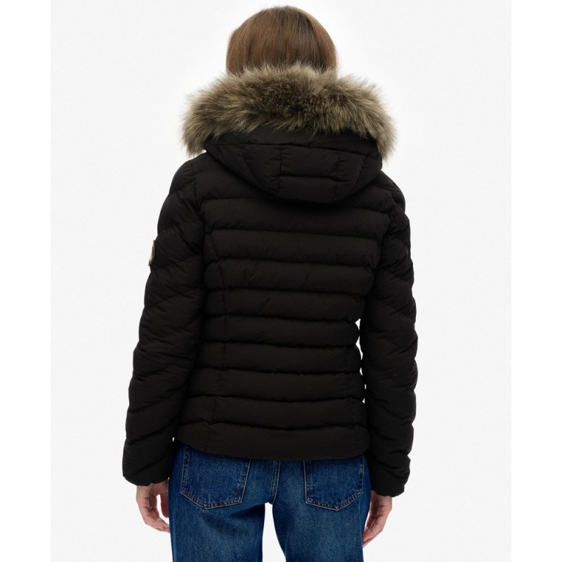 Optez pour la doudoune Fuji à capuche fausse fourrure amovible, alliant chaleur, confort et style. Sa coupe mince met en valeur la silhouette, son rembourrage léger protège du froid et son traitement déperlant résiste aux petites pluies. Polyvalente et pratique avec ses poches zippées et détails soignés, c’est la veste idéale pour un look chic ou urbain en toute saison.