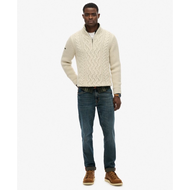 Découvrez le Jumper Jacob Cable Knit Half Zip Superdry, une pièce iconique du style Original & Vintage.